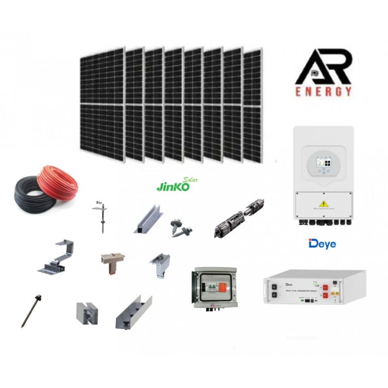 Kit sistem fotovoltaic hibrid- panouri fotovoltaice 6.44 kWp hibrid cu montaj inclus, monofazat, panouri Ja Solar , acumulator 5.12kWh DEYE, invertor DEYE